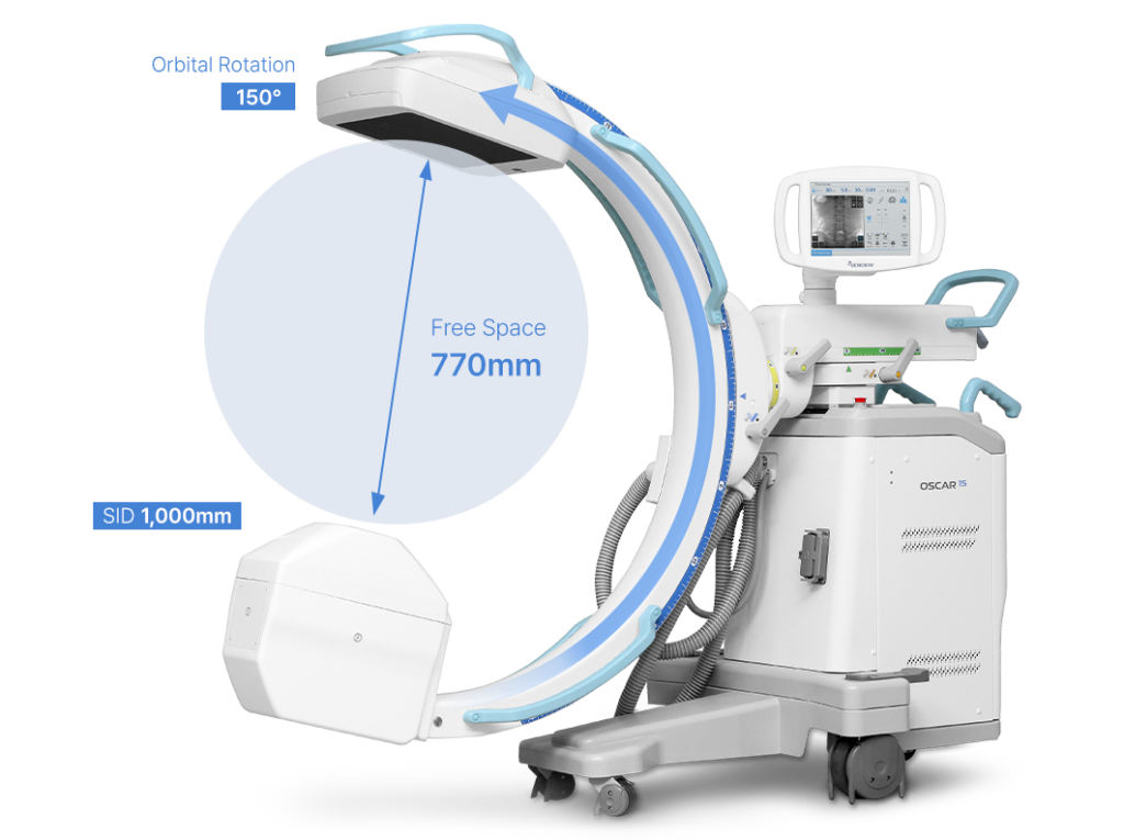770mm free space and 150 orbital rotation provides convenient operation environment for operator.