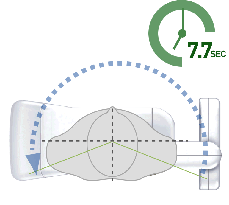 7.7 secs fast exposure time minimizes motion artifact for accurate and clear images, while low radiation exposure minimizes patient exposure.