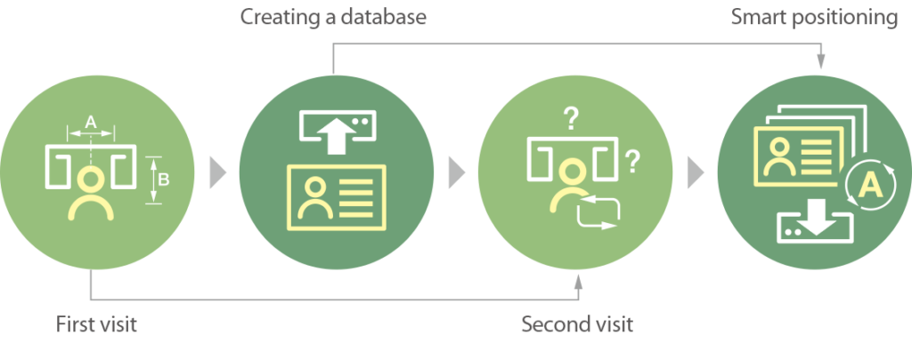 By creating a database based on the patient-specific exposure conditions and positioning of the previous images, you can create fast and convenient scans without any additiona adjustments.